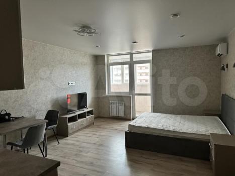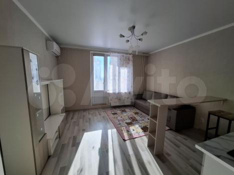 В квартире Присутствует необходимая мебель как в комнате, так и на кухне, а также вся необходимая техника: кондиционер, холодильник, микроволновка и стиральная машина.