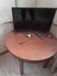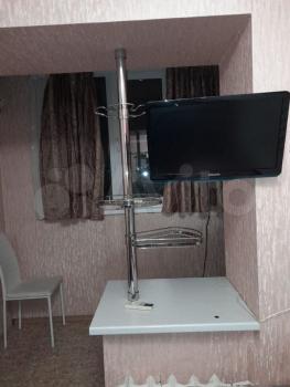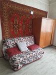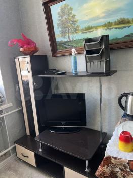 Гостиная - раскладной диван, большой письменный стол с креслом, стенной шкаф с телевизором. Есть гладильная доска, сушилка для белья.