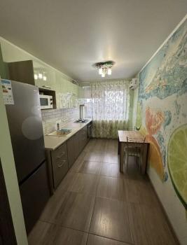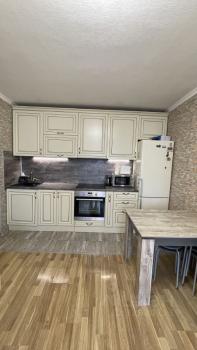 Квартира расположена на третьем этаже кирпичного дома, построенного в 2020 году. В квартире выполнен евро ремонт, что создает атмосферу комфорта и уюта. Просторная кухня оснащена необходимой бытовой техникой, включая холодильник и газовую плиту. В комнате установлен вместительный шкаф и диван, создавая условия для комфортного проживания.
