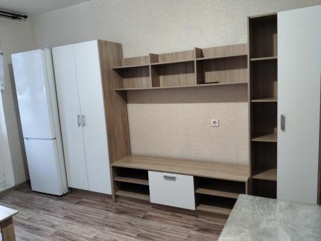 Мебель полностью новая, есть все для жизни и хранения вещей: 2 больших глубоких шкафа, перегородка-стеллаж, кровать с подъемным механизмом. Кухня с подсветкой на уровне столешницы и пола, установлен фильтр для питьевой воды, индивидуальный котел стильно встроен в кухонный гарнитур (горячая вода всегда есть и отопление регулируется самостоятельно). Проведен интернет, за него платить не надо. В подарок первому жителю идет умная колонка. Дом сдан летом 2025 года, во дворе детская и спортивная площадки. В шаговой доступности современные детский сад и школа. Продуктовые магазины и остановка общественного транспорта тоже рядом.