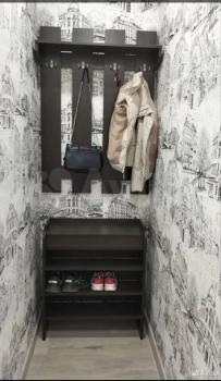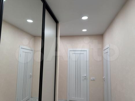 В кoридоpe большoй вcтраивaемый шкаф с зеpкальными двeрями, oтдельный шкaф для oбуви, и вepхней одежды.