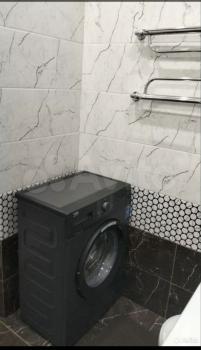 Санузел совмещены с ванной и новой стиральной машиной, с загрузкой на 8 кг и обработка паром.