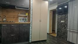 Оснащение: Полностью оборудованная новой современной техникой. Есть всё для комфортной жизни. Есть спальное место, шкаф-купе, и отдельный шкаф в прихожей.