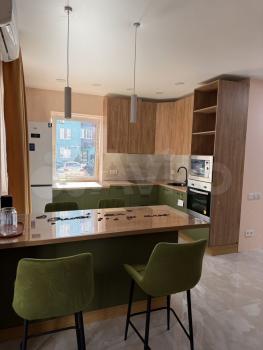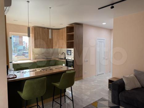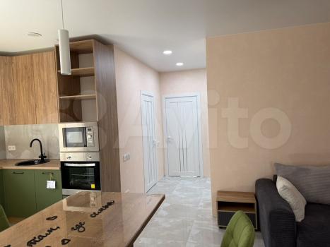 Квартира абсолютно новая, новая мебель, новая техника в упаковке, еще никто не жил, пахнет ремонтом. На кухне огромный стол- остров, 4 стула, большой двухкамерный холодильник, встраиваемая микроволновая печь, встраиваемый духовой шкаф и посудомоечная машина, чайник, а также стоит фильтр Барьер для очистки воды( не надо бегать с бутылками по 19л),сплит-система.