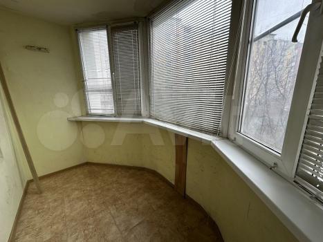 Просторный балкон застеклен.