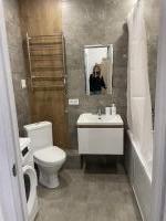 Санузел совмещенный, оформлен в современном стиле. Имеется открытая парковка во дворе.
