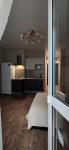 Техническое оснащение студии: кухонная плита с духовкой, встроенная вытяжка с принудительным выводом паров в вентиляционную шахту, электрочайник, холодильник, стиральная машина, персональный компьютер, сплит система, работающая на охлаждение и на обогрев; вешалка для верхней одежды, зеркало.