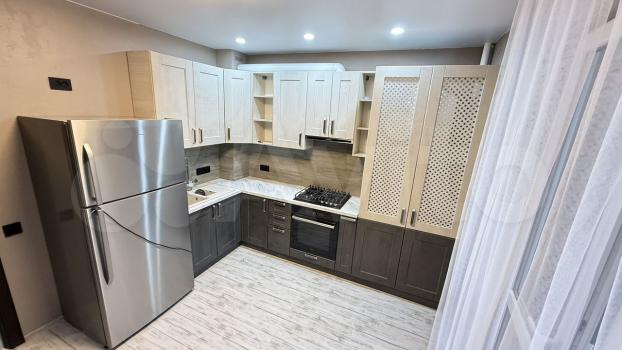 В квартире выполнен свежий евро ремонт. Комнаты изолированные, что обеспечивает комфорт и приватность. Просторная кухня оснащена всей необходимой техникой, включая холодильник, плиту и микроволновую печь. В гостиной установлен телевизор и удобный диван, а также вместительный шкаф для хранения вещей.