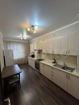 Квартира расположена на третьем этаже кирпичного дома, построенного в 2020 году. В квартире выполнен евро ремонт, что создает атмосферу комфорта и уюта. Просторная кухня оснащена необходимой бытовой техникой, включая холодильник и газовую плиту. В комнате установлен вместительный шкаф и диван, создавая условия для комфортного проживания.