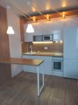 В студии выполнен свежий евроремонт, что создает уютную атмосферу. Просторная комната оборудована обеденной зоной и раскладным диваном.