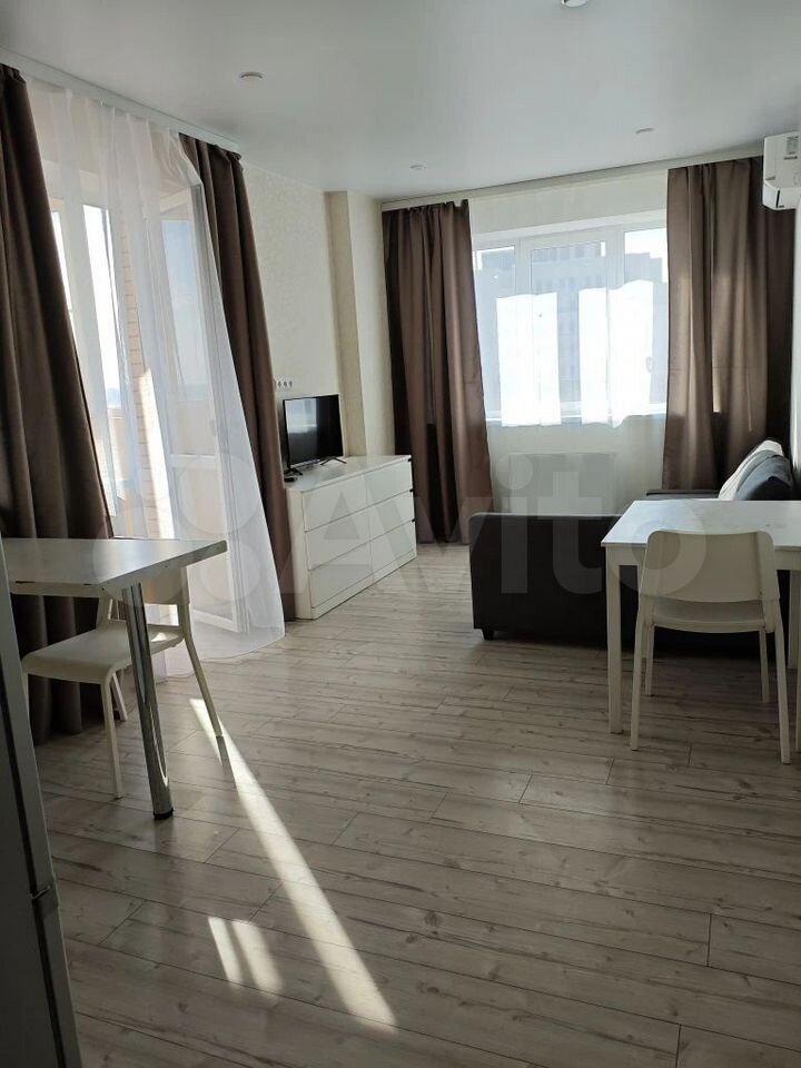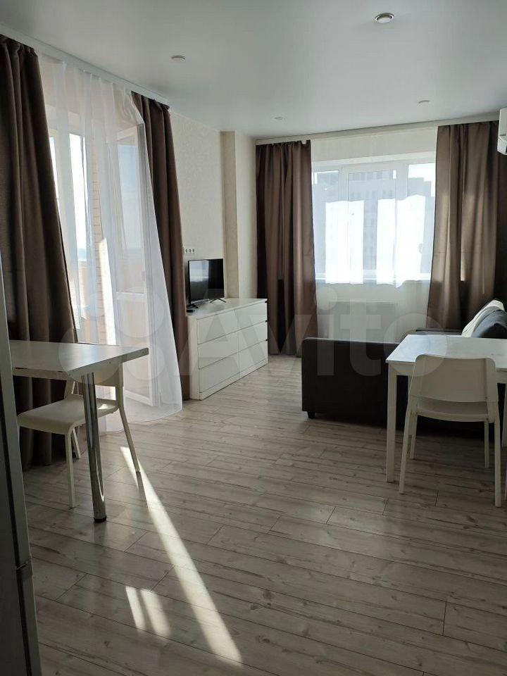Сдаю на длительный срок просторную новую студию с видом на Дон! В квартире сделан дорогой ремонт, есть мебель и техника, а так же большой встроенный шкаф с зеркалами.