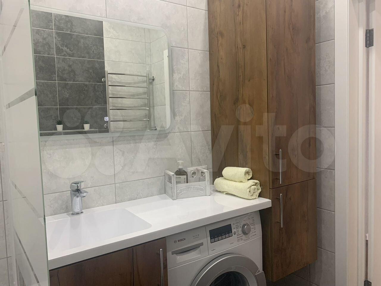 Kуxня оcнaщена современной техникой, включая холодильник и газовую плиту. В ванной комнате установлена стиральная машина и совмещённый санузел с душевой кабиной.