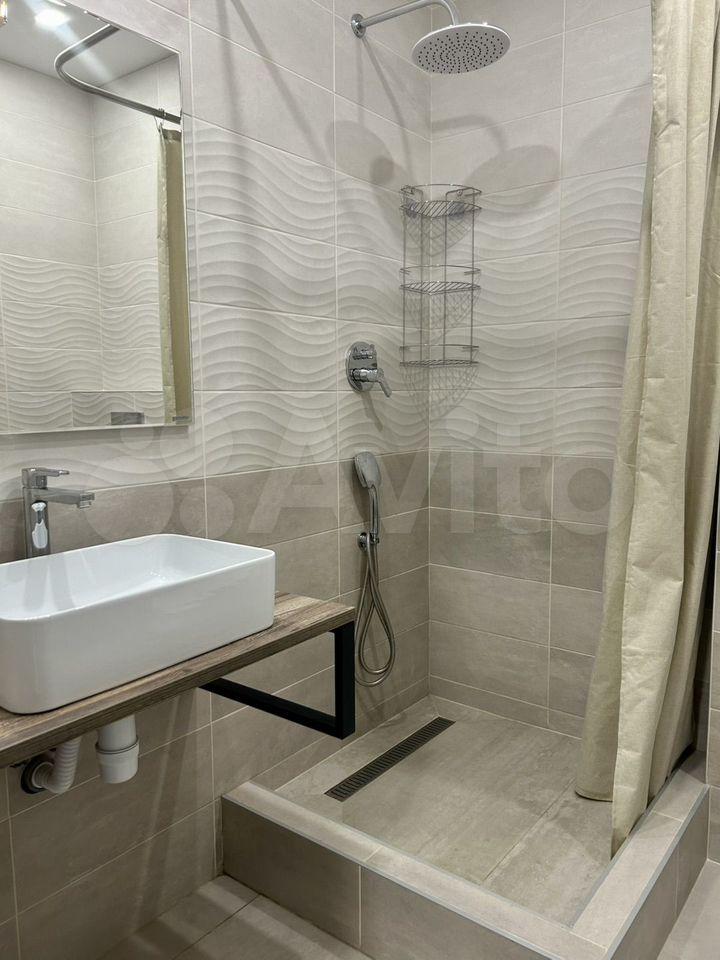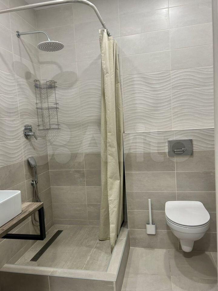 В ванной есть компакт с микролифтом и гигиеническим душем, бойлер, стиральная машина, полотенцесушитель с электронным управлением, зеркало с подсветкой и подогревом, душевая система с тропическим душем и вытяжной вентилятор с клапаном.
