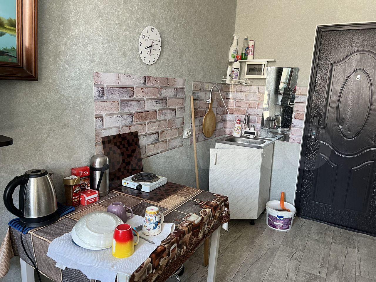 Мебель полностью новая, есть все для жизни и хранения вещей: 2 больших глубоких шкафа, перегородка-стеллаж, кровать с подъемным механизмом. Кухня с подсветкой на уровне столешницы и пола, установлен фильтр для питьевой воды, индивидуальный котел стильно встроен в кухонный гарнитур (горячая вода всегда есть и отопление регулируется самостоятельно). Проведен интернет, за него платить не надо. В подарок первому жителю идет умная колонка. Дом сдан летом 2025 года, во дворе детская и спортивная площадки. В шаговой доступности современные детский сад и школа. Продуктовые магазины и остановка общественного транспорта тоже рядом.