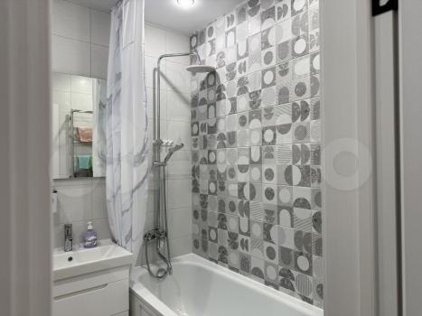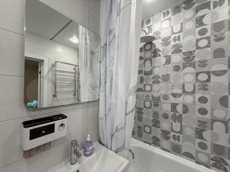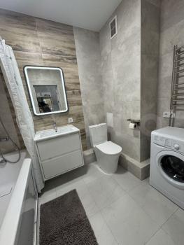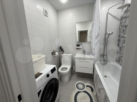 На кухне есть вся необходимая бытовая техника, включая холодильник и стиральную машину. Ванная комната совмещенная, оборудована современной сантехникой.