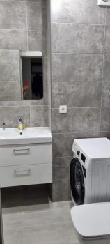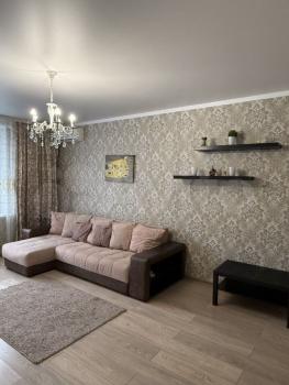 Общая площадь квартиры — 42 м², жилая — 38 м². Просторная кухня площадью 12 м² оснащена всей необходимой техникой, включая холодильник, плиту и стиральную машину. В квартире выполнен качественный евро ремонт, стены украшены стильными обоями.