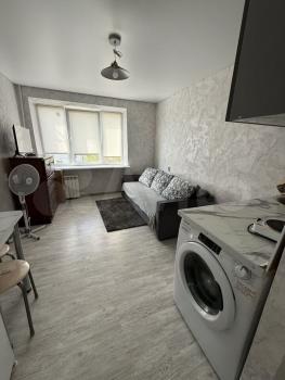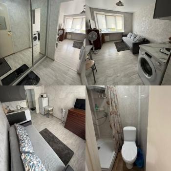 В квартире сделан ремонт , вся необходимая техника есть . Раскладной диван , микроволновая печь , холодильник, стиральная машинка, стол , шкаф для одежды . Санузел совмещен. Рядом остановка , магазины , рынок .
