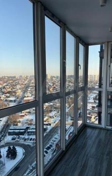• большая застеклённая лоджия с красивым видом на город