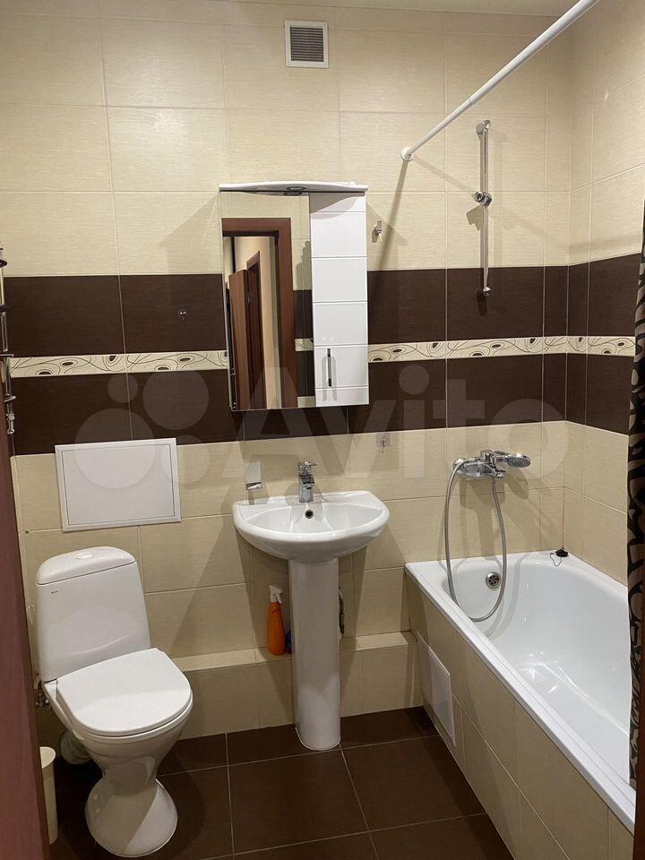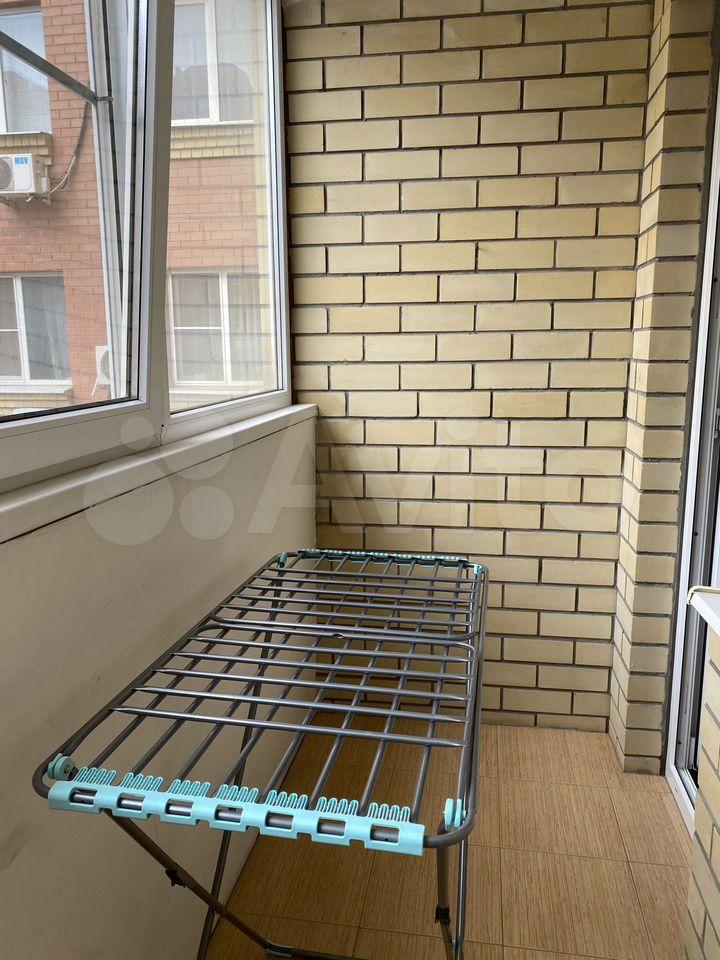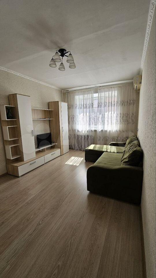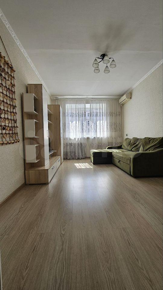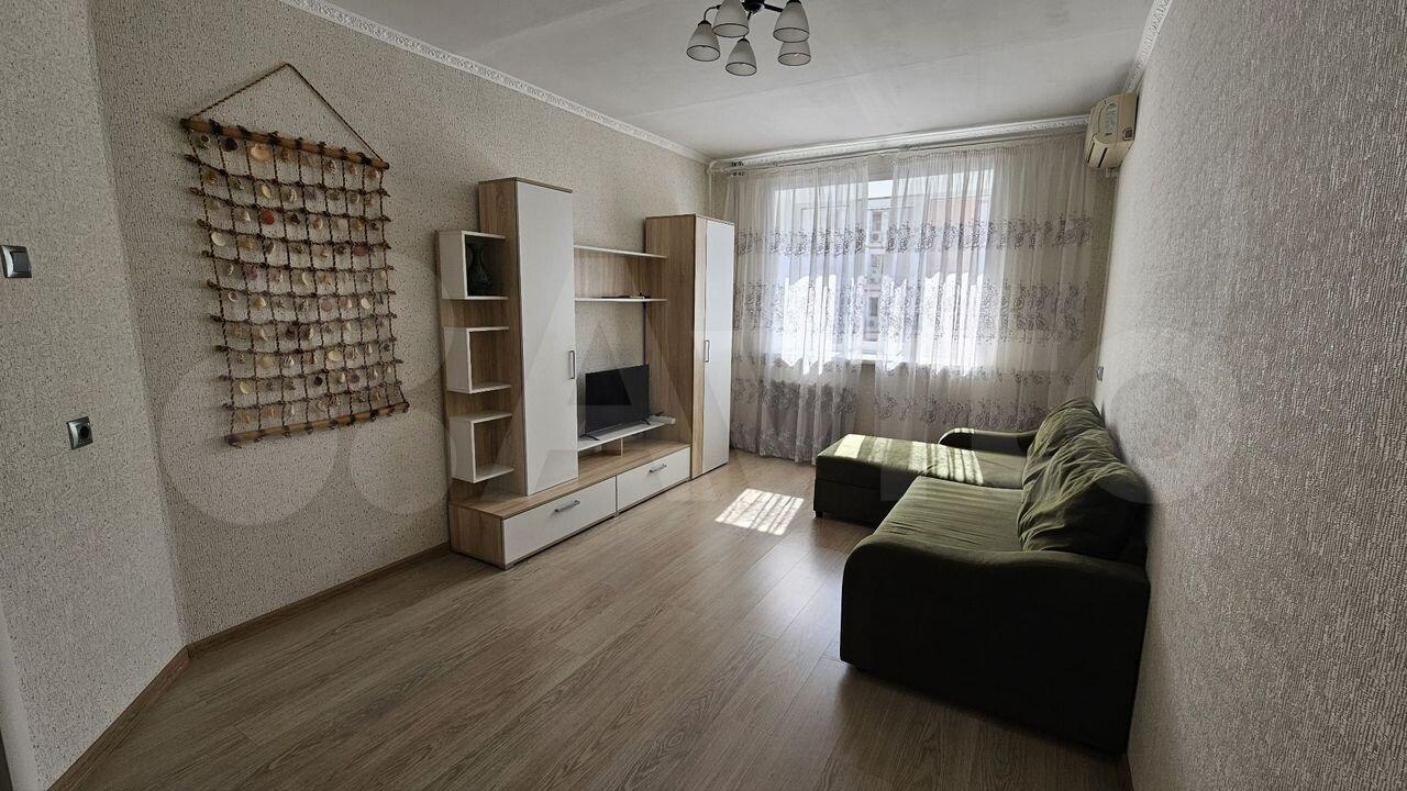 Есть все необходимое для проживания. Спальное место одно (диван-кровать, двухспальное место), кондиционер, шкаф, комод, тв тумба, телевизор, пуфик, полноценный кухонный гарнитур с газовой панелью, микроволновка, чайник, холодильник, обеденный стол со стульями, стиральная машинка. Застекленный балкон.