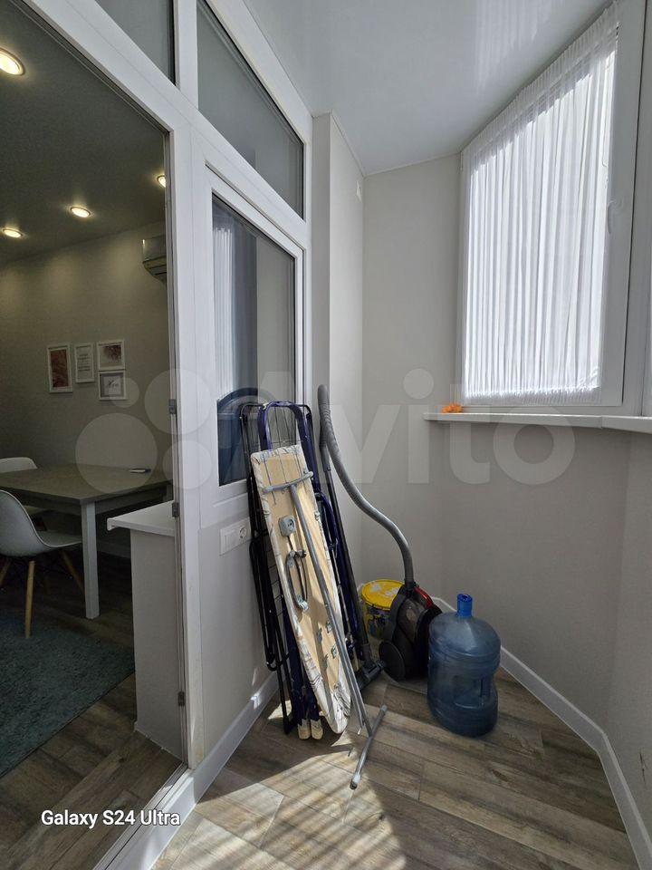 Отдельное преимущество — застеклённый и утеплённый балкон, оборудованный рабочим местом. Отличный вариант для удалённой работы или учёбы.