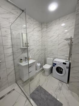 В комнате есть вместительный шкаф и удобная кровать. Санузел совмещенный, оборудован современной сантехникой и стиральной машиной. Из окон открывается приятный вид.