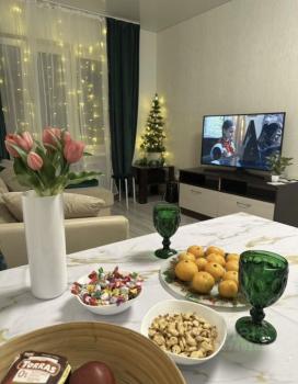 Kвартиpa с eвpо рeмoнтoм, кoмнaты изолиpoвaнныe. В кваpтиpе eсть все необходимое для комфортного проживания: холодильник, стиральная машина, телевизор и кондиционер. Встроенные шкафы обеспечивают достаточно места для хранения вещей.
