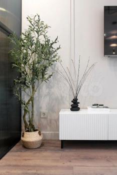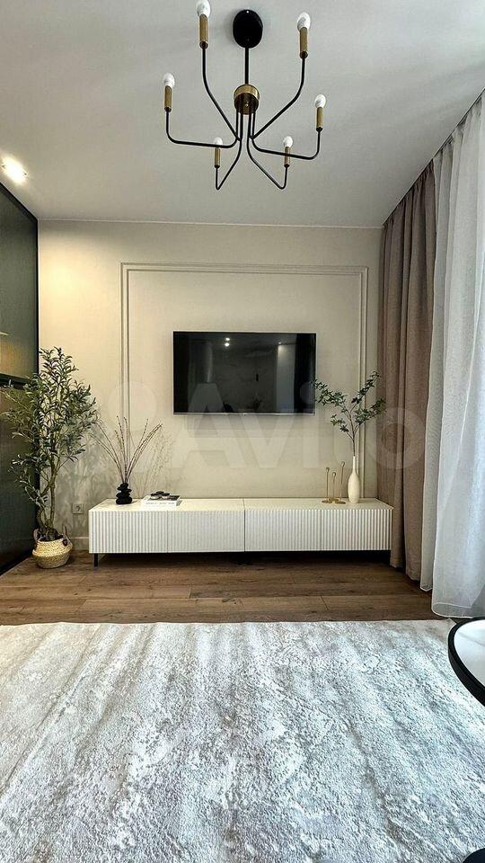? Гостиная: Уютный диван, Smart TV, обустроен уголок для отдыха.