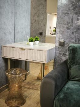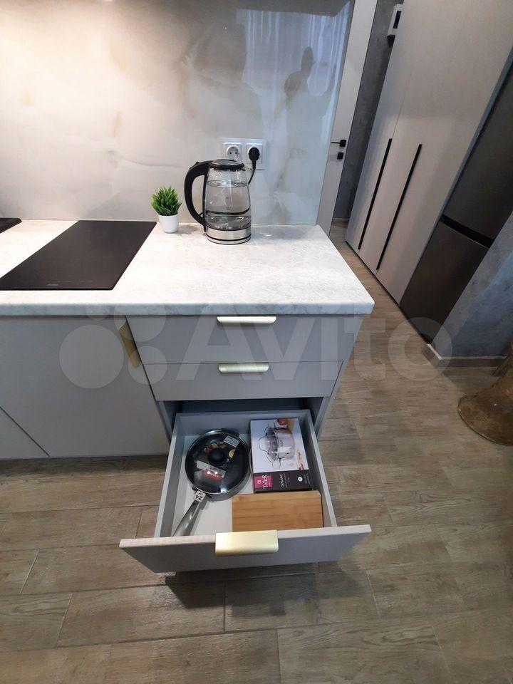 Ремонт выполнен в стиле «лофт», повсюду стильная подсветка, панорамные окна в пол, вся мебель и техника абсолютно новая. Из окна открывается невероятно красивый вид. Квартира оснащена тёплыми полами, водонагревателем, в обеих комнатах установлены сплит-системы, на кухне имеется посудомоечная машина, микроволновка, в спальне установлен телевизор. Двуспальная кровать (вместе с ортопедическим матрасом) в одной и диван в другой комнате. В коридоре и спальне стоят зеркальные встроенные шкафы. Кухня полностью оборудована, холодильник куплен в прошлом году. Санузел совмещенный, есть стиральная машина. Имеется высокоскоростной интернет от компании «Билайн» (250 мб/с).