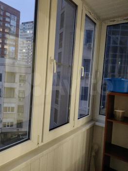 Окна квартиры выходят во двор. Балкон застеклен, что позволяет использовать его как дополнительное пространство.