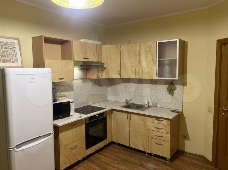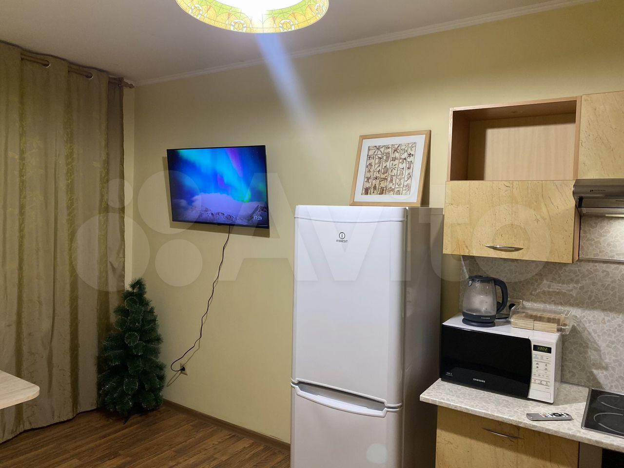 Квартира с мебелью техникой. Есть кухонный гарнитур, прихожая, шкаф купе, плазменный телевизор, раскладной диван, кондиционер, стиральная машинка, холодильник, встроенная варочную панель, микроволновка.