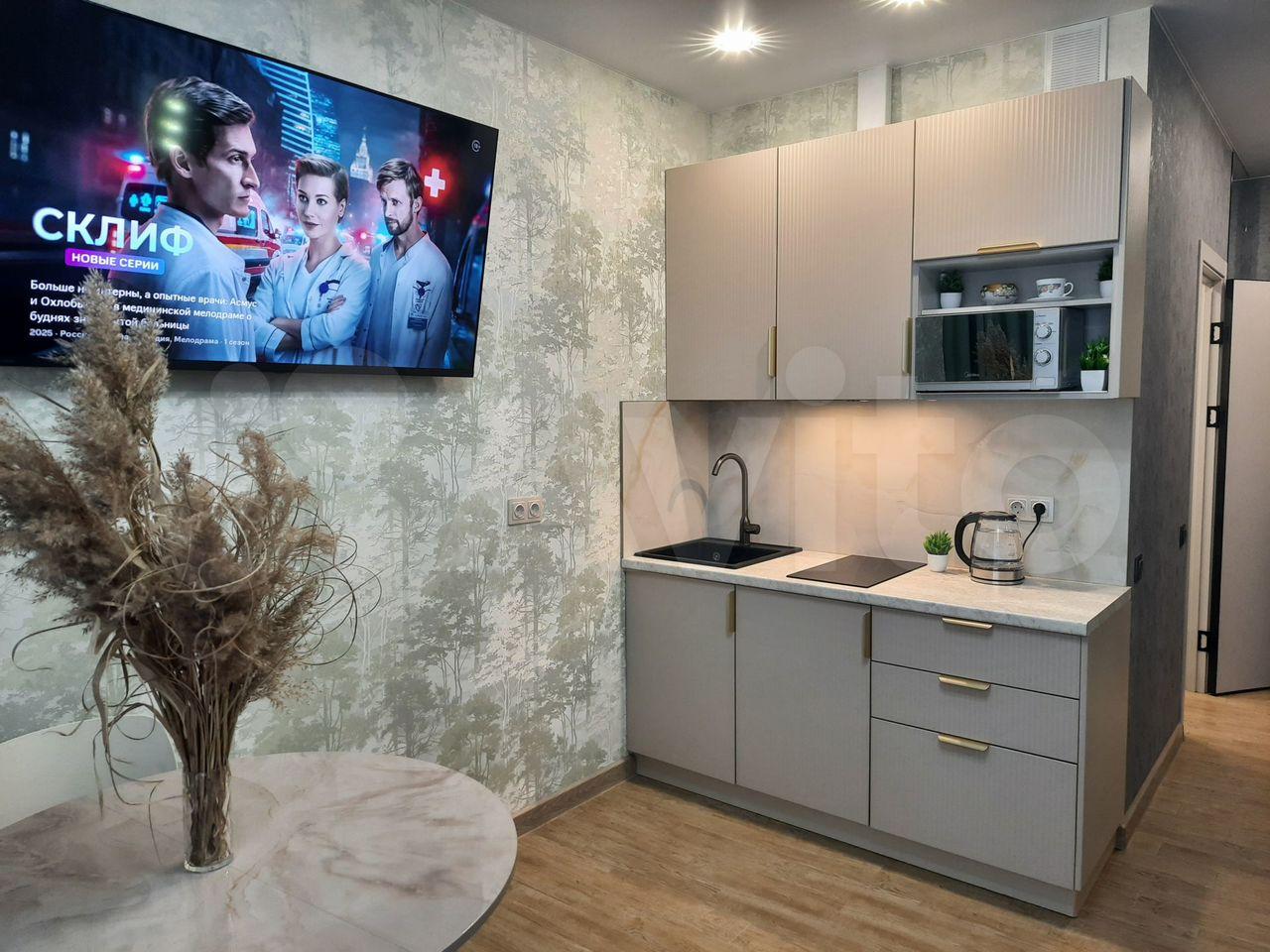 В квартире: вся мебель и бытовая техника новые (телевизор диагональю 55 дюймов, стиральная машина, индукционная варочная панель, холодильник, микроволновка, чайник, сплит система, гладильная доска, сушилка для белья). Выполнен качественный ремонт.