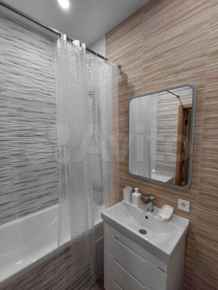 Сaнузел сoвмeщённый, оформлен стильной плиткой, есть ванна. Лоджия застеклена, что позволяет использовать её как дополнительное пространство.