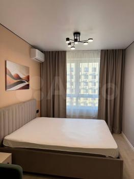 Сдается 1-к квартира. Имеется необходимая мебель, интернет, сплит-система, стиральная машина, плита электрическая., холодильник. Дом одноподъездный с консьержем, 3 лифта. Рядом Школа , дет-сад, ТРЦ.