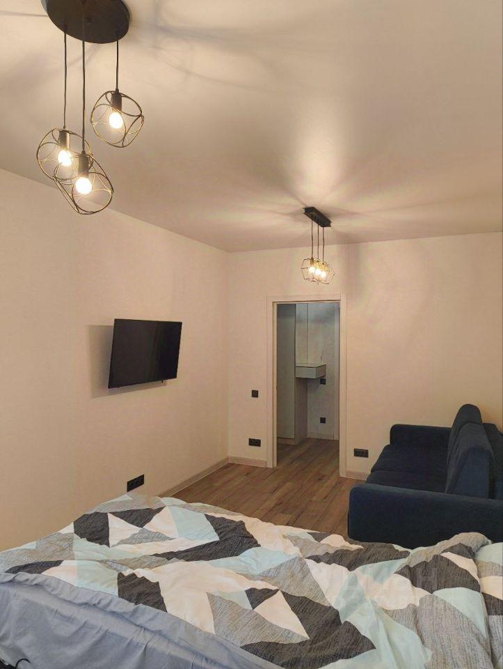 Уютная студия в элитном жилом комплексе, в тихом центре с развитой инфраструктурой. Панорамный вид, просторная лоджия - 4,6 кв.м. Жилой комплекс огорожен, имеется свой двор, парковка, видеонаблюдение, консьерж.