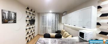 Студия уютная и просторная в силу грамотного зонирования пространства. Просторная застекленная лоджия с электрическим теплым полом. Имеется всё необходимое для комфортного проживания: большой и удобный диван-кровать, вместительный шкаф-купе, кондиционер, современный ЖК-телевизор Xiaomi с очень шустрым и удобным Smart TV, холодильник, микроволновка, духовой шкаф, индукционная варочная панель, Wi-Fi, стиральная машинка.
