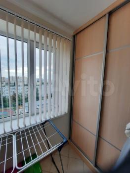 Большой балкон с красивым видом, на балконе вместительный шкаф.
