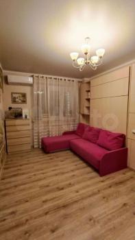 В комнате стоит конструкция - шкаф-диван-кровать, которая позволяет грамотно организовать пространство. При желании кровать поднимается в шкаф, и остаётся уютный диван. В квартире 2 кондиционера.