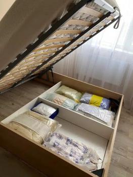 Вся мебель и техника: кровать с ортопедическим матрасом с подъемным механизмом, хороший диван, гардеробная, холодильник, стиральная машинка, сплит, телевизор, микроволновка.