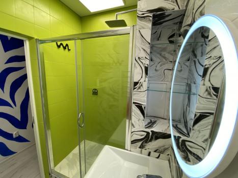 - душ с терморегулятором, а зеркало в ванной с подсветкой