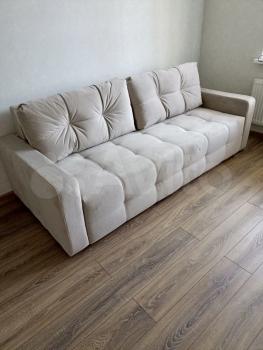В комнате есть вся необходимая мебель: новый двуспальный диван, тумба под ТВ, шкаф для одежды, сплит-система.