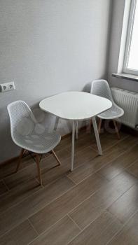 Кухня: полностью укомплектована (холодильник, плита + духовка, микроволновая печь, чайник, посуда, столовые приборы), обеденный стол и стулья на две персоны. Кухня с выходом на балкон.