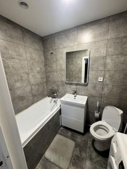 В квартире: имеется холодильник, сплит система, стиральная машина,новая двуспальная кровать с ортопедическим матрасом, диван, шкаф, гардеробная, электрическая плита с духовым шкафом, телевизор с wifi.
