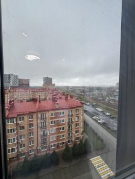Квартира находится на 18ом этаже, балкон имеет панорамное остекление, что открывает отличный вид на город
