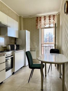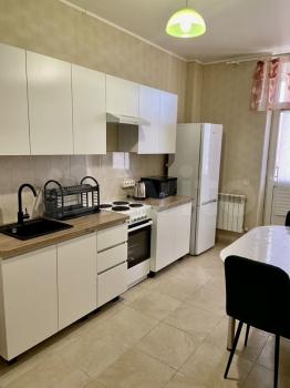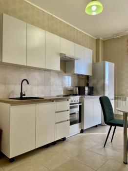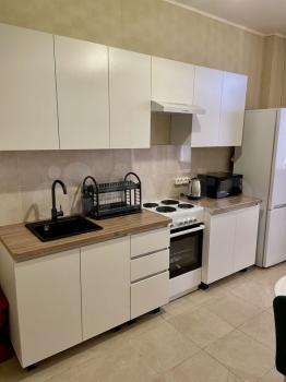 В квартире новая мебель, новая кухня.