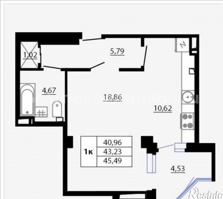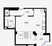 1-к. квартира, 42 м², 13/19 эт., без агента