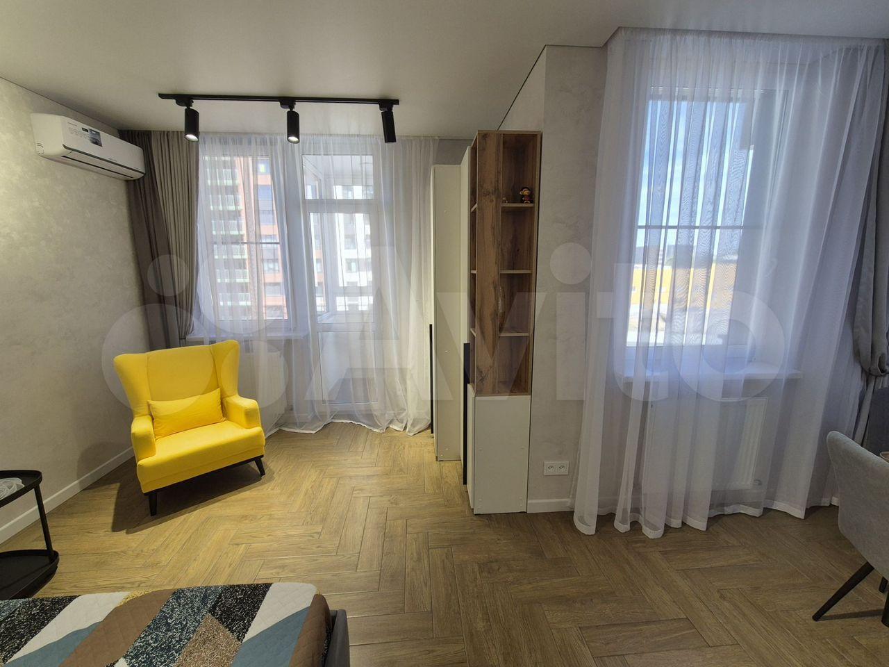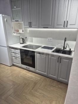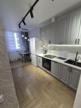 Квартира с евроремонтом, поэтому все выглядит современно и стильно. В комнате и на кухне уже есть необходимая мебель, что сэкономит вам время на переезд. Из техники в вашем распоряжении кондиционер, холодильник, микроволновая печь, телевизор и стиральная машина. Санузел совмещенный и оборудован ванной, поэтому можно расслабиться после рабочего дня.