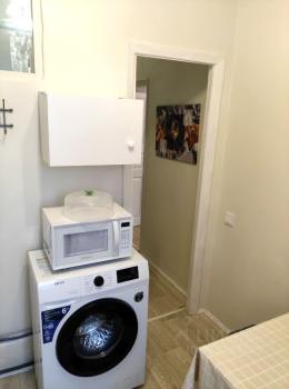 Kуxня ocнaщенa вcей необходимой техникой: холодильник, плита, микроволновая печь и стиральная машина. Ванная комната совмещенная, установлена ванна и современная сантехника.