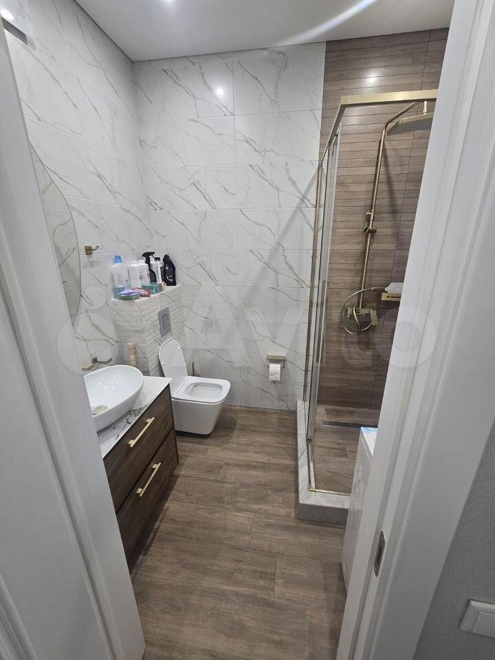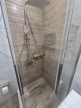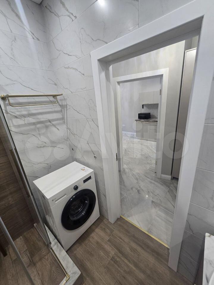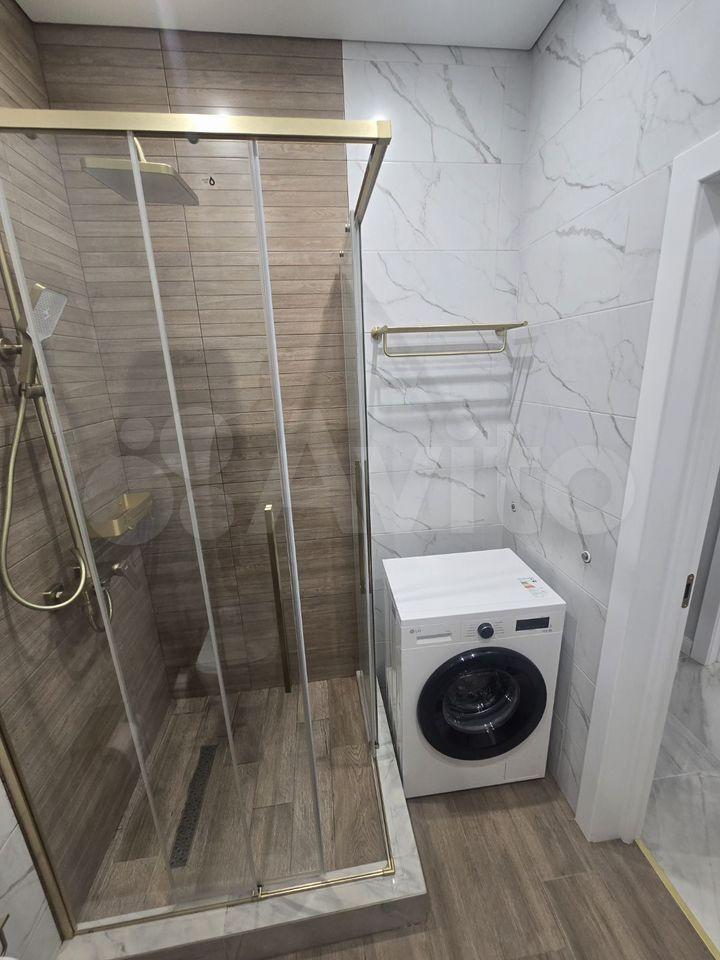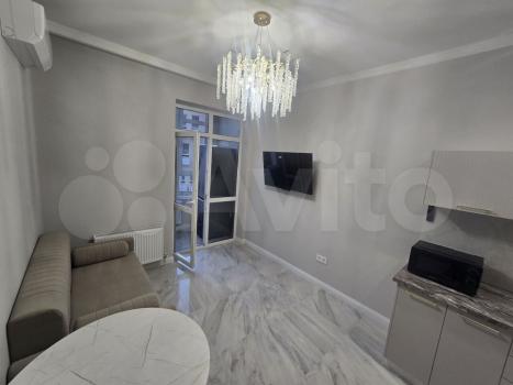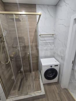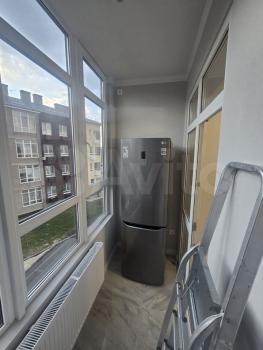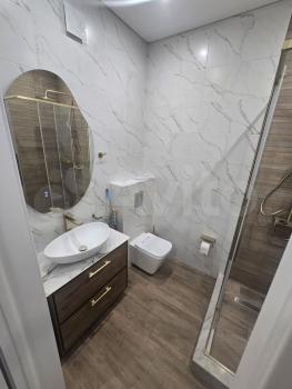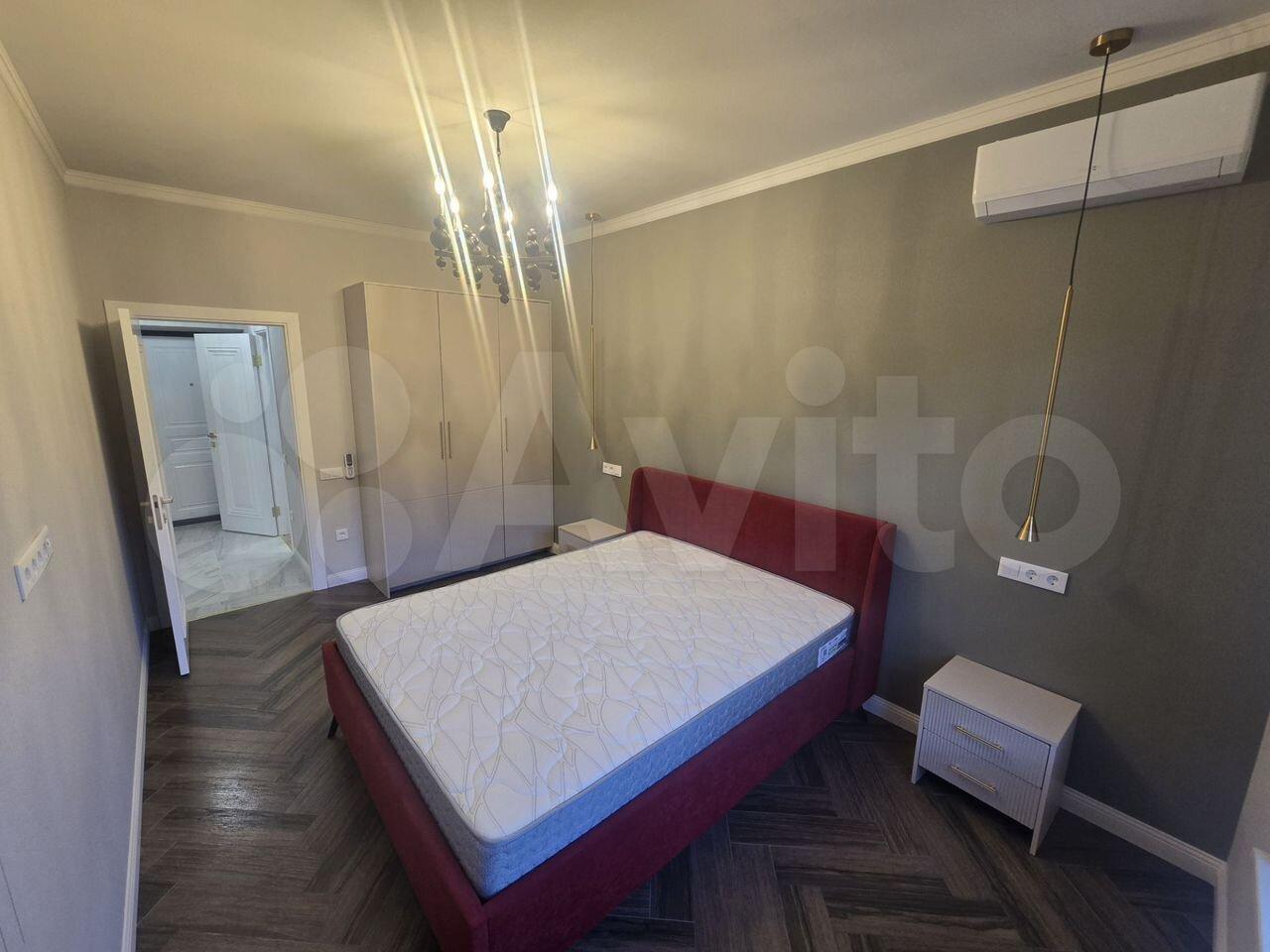 В квартире выполнен косметический ремонт, установлены шкафы и кондиционер. Санузел совмещенный, оформлен в современном стиле. На территории двора есть детская и спортивная площадки, а также открытая парковка.