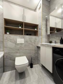 ? Современный санузел, душевая кабина, стиральная машина