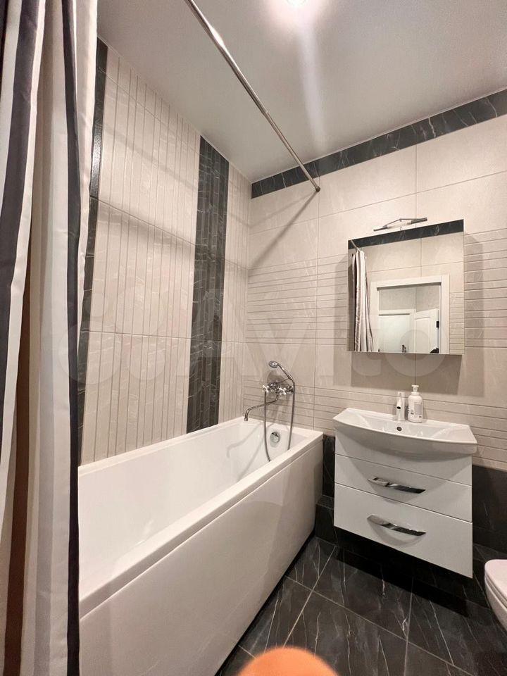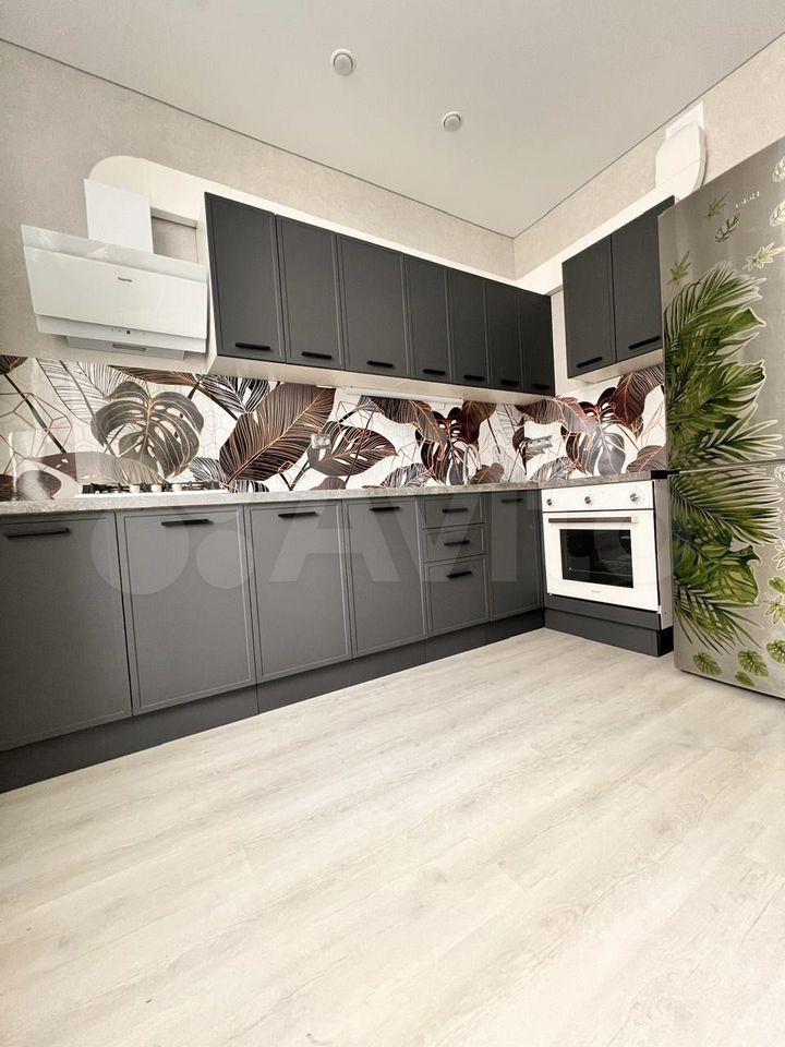 В квартире выполнен дизайнерский ремонт. Спальня изолированная, кухня объединена с гостевой и лоджией, санузел совмещенный с большой ванной. В спальне есть отдельная мини-гардеробная. Техника: 2 сплита, холодильник, электрическая плита, посудомоечная машина, микроволновка, духовой шкаф, вытяжка, стиральная машина, телевизор.
